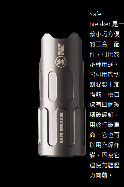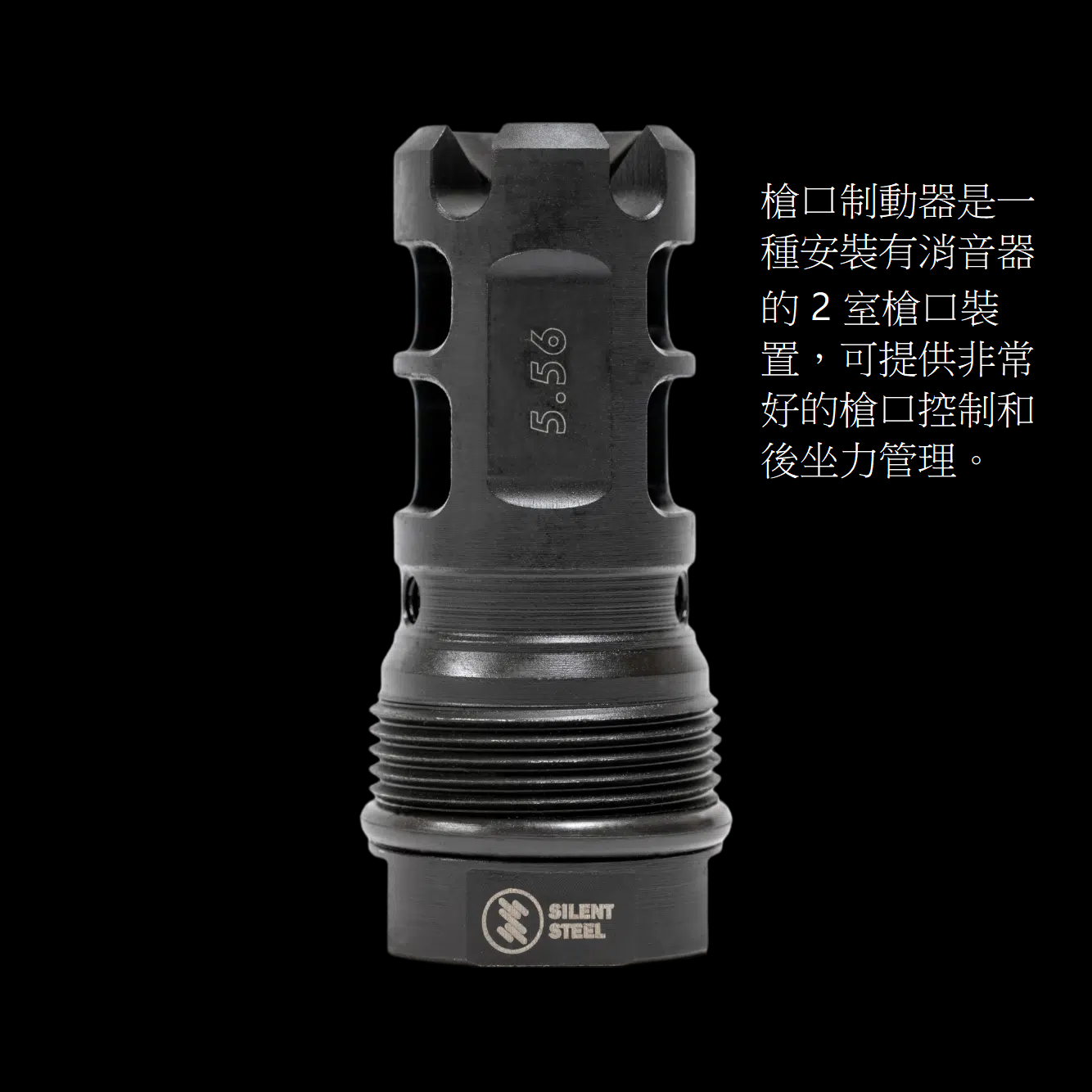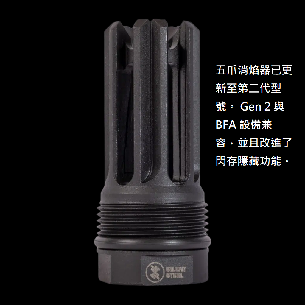 消焰器 所有爪都相互連接。這可以防止尖頭式消焰器典型的砰砰聲。此外,消焰器更堅固,如果步槍掉落,尖頭也不會彎曲。