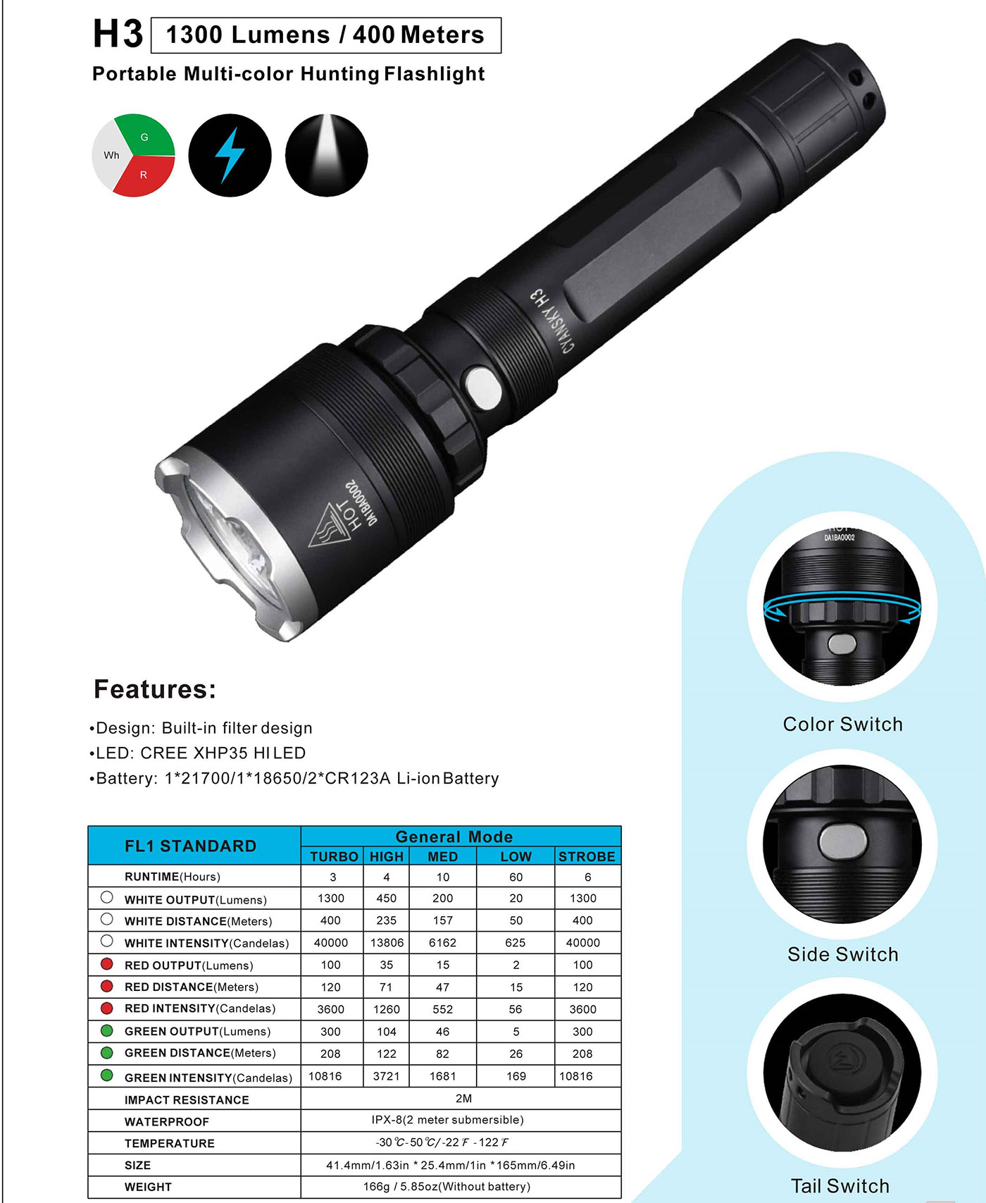 高端照明手電筒 - 用於 執法、射擊、自衛、露營、狩獵、日常攜帶。